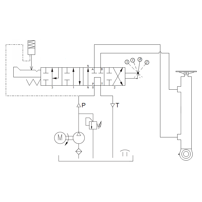 dźwignia z 3 pozycjami roboczymi i 1 pozycją neutralną (3 - 1 - 0 - 2)