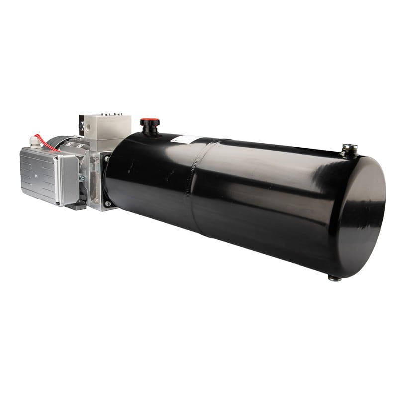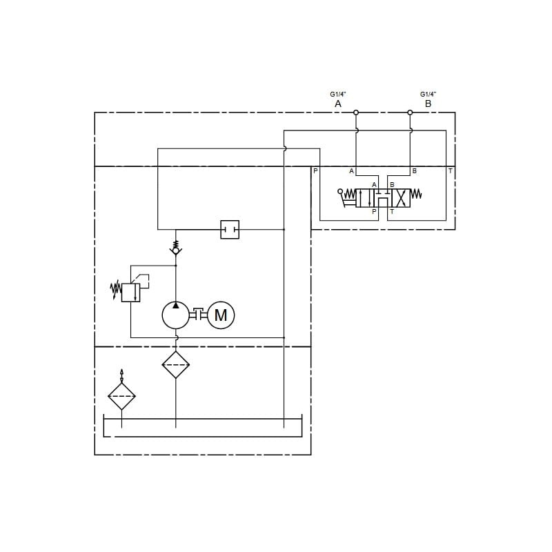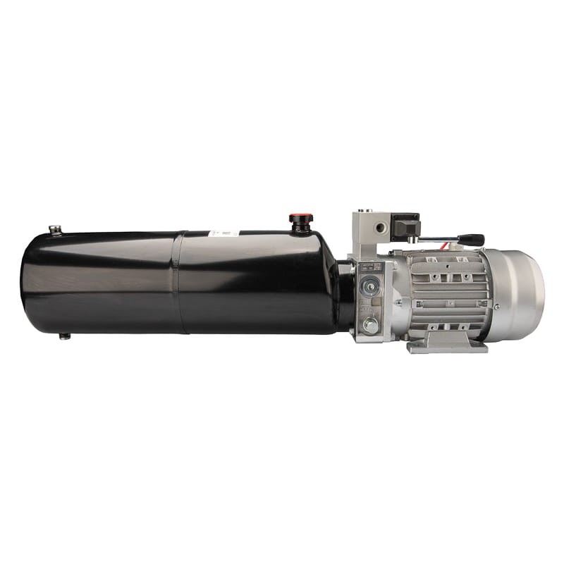 pompa, silnik elektryczny, płyta łącząca, rozdzielacz z dźwignią do sterowania siłownikiem dwustronnym, zawór przelewowy, zawór zwrotny za pompą, zbiornik. |
