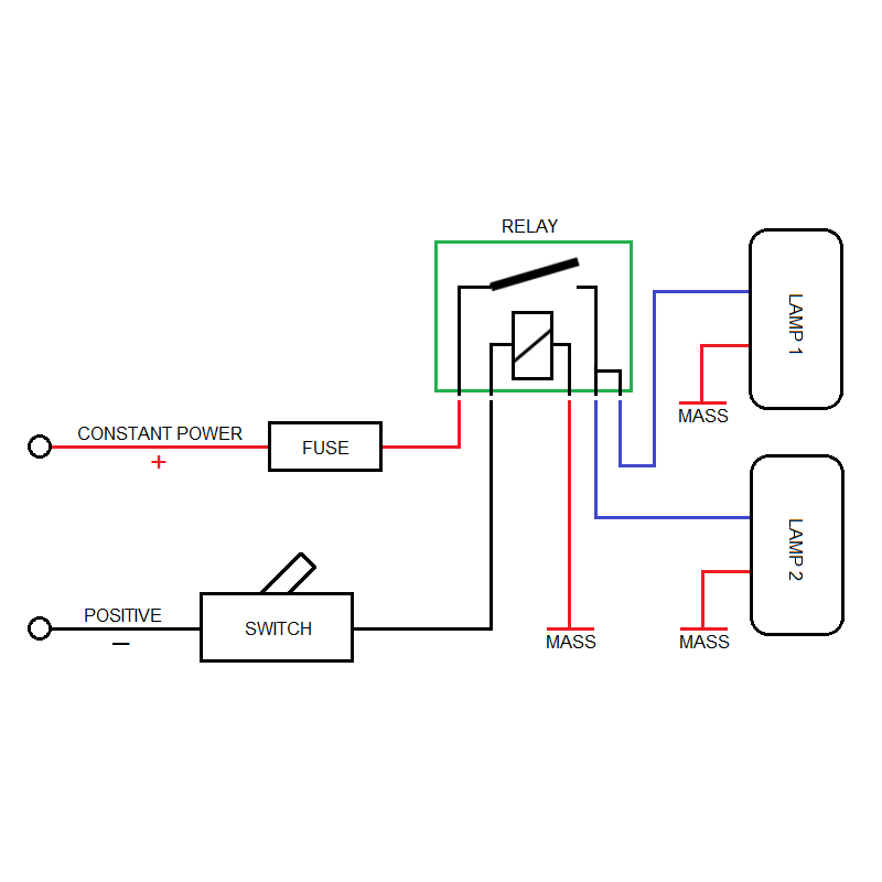 | Dodatkowe wyposażenie wiązki przewodów: | bezpiecznik 30A, przekaźnik 40A, przełącznik on - off |