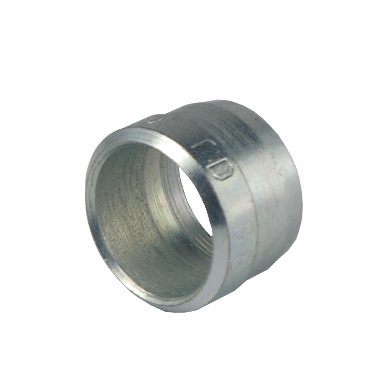 Pierścień zaciskowy typu TEKALAN montowany na rurkę hydrauliczną. Rurki metalowe są
