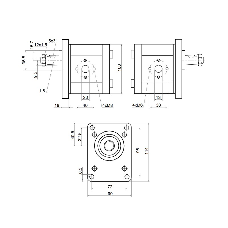 | Rodzaj wałka napędowego | Stożkowy gładki 1:8 |