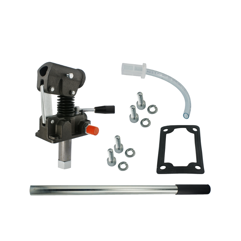 W skład zestawu wchodzą: pompa, dźwignia, uszczelka pompy, zestaw śrub oraz wąż z filtrem.