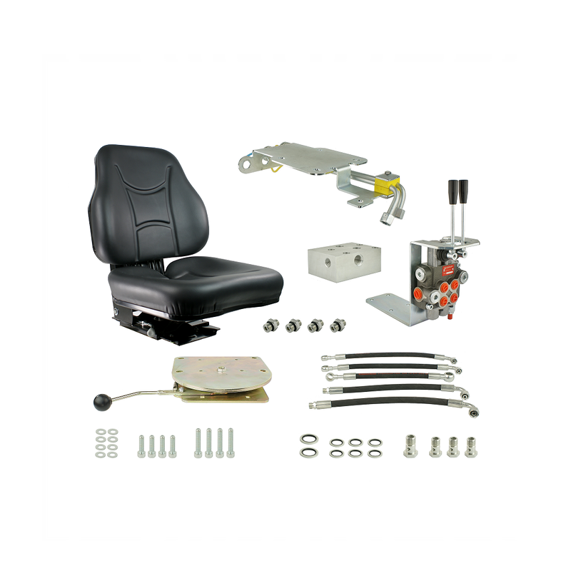 5. Dwa szybkozłącza hydrauliczne osadzone na solidnym wsporniku mocowanym pod siedzeniem