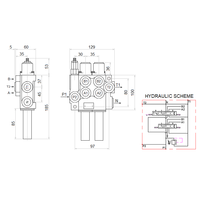 Przystosowany do ciągników i maszyn z układem hydraulicznym otwartym. Układ otwarty charakteryzuje się tym, że pompa hydrauliczna uruchamiana jest w momencie startu silnika a rozdzielacz hydrauliczny, w momencie gdy nie jest używany, swobodnie przepuszcza olej z pompy w kierunku zbiornika. Pompa pracuje swobodnie a obieg oleju między pompą rozdzielaczem i zbiornikiem odbywa się na niskim ciśnieniu. Idealny do sterowania trzema sekcjami w turze, podnoszeniem ramy, pochyłością łychy i krokodylem lub chwytakiem, w ciągnikach gdzie wydajność pompy hydraulicznej nie przekracza 40L/min, między innymi: Ursus C-330, C-360, C-385, 912, 914, 1224, 2812, 3512 Zetor 5211, 7211, 5245, 7245, 8011 MF 255 i inne Sekcja pływająca inaczej wolny spływ, wykorzystywana m.in. do pługów śnieżnych lub w ładowaczach czołowych TUR. Powoduje swobodny ruch tłoczyska w cylindrach hydraulicznych, zabezpiecza przed uszkodzeniem elementy, które mają bezpośredni kontakt z podłożem np. lemiesz pługa. |
